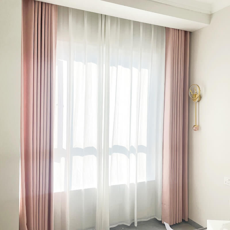 颜色温柔,遮光度高,轨道顺滑,窗帘垂顺漂亮,专业超值